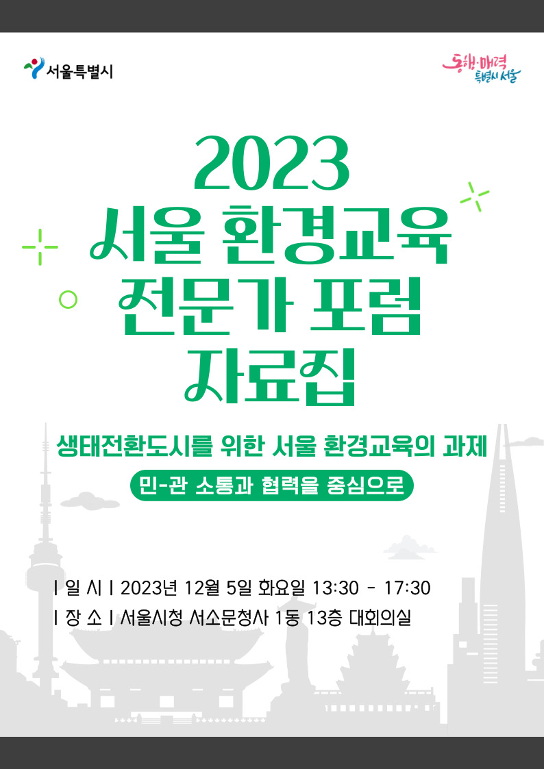 2023년 12월 5일 진행된 <2023 서울 환경교육 전문가 포럼> 자료집입니다.